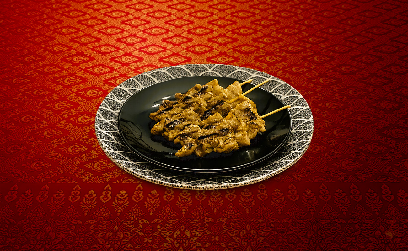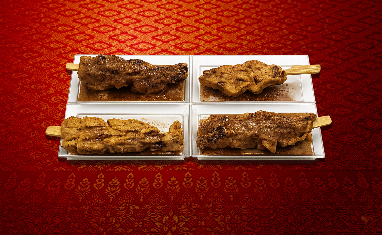 (curry jaune, lait, lait de coco, épices, sauce satay)