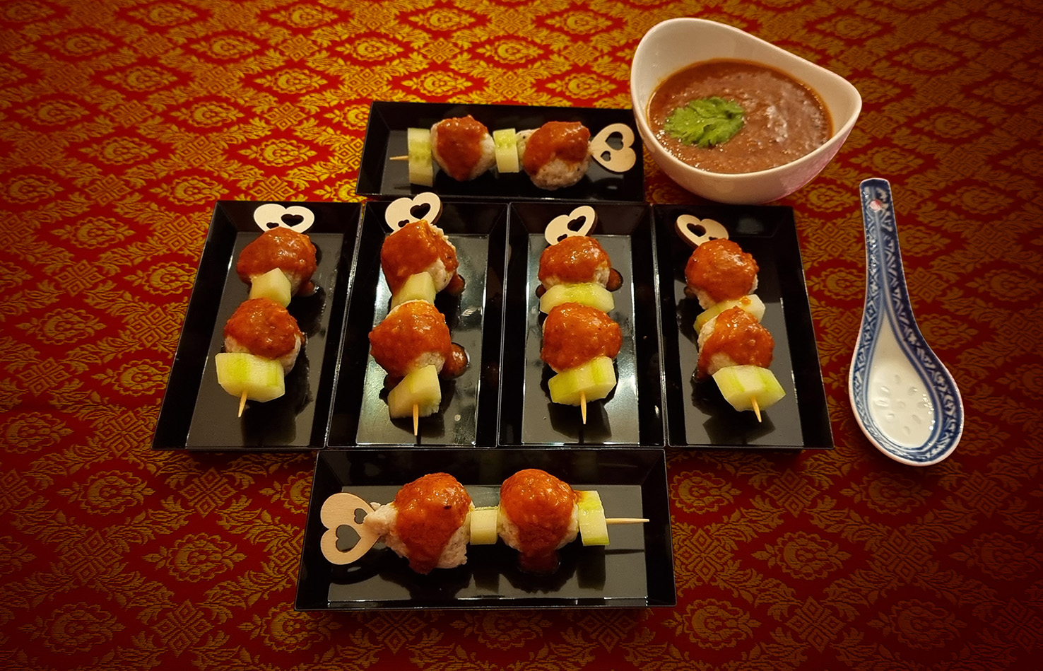 (coriandre, ail, tapioca, concombres, épices, cacahuètes)