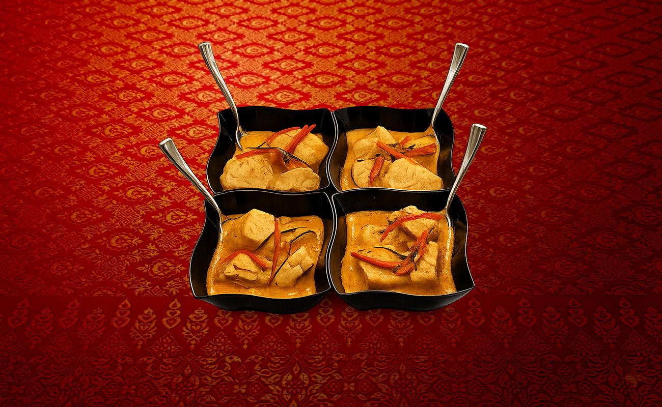 (curry massaman et curry rouge, lait et sucre de coco, sel)